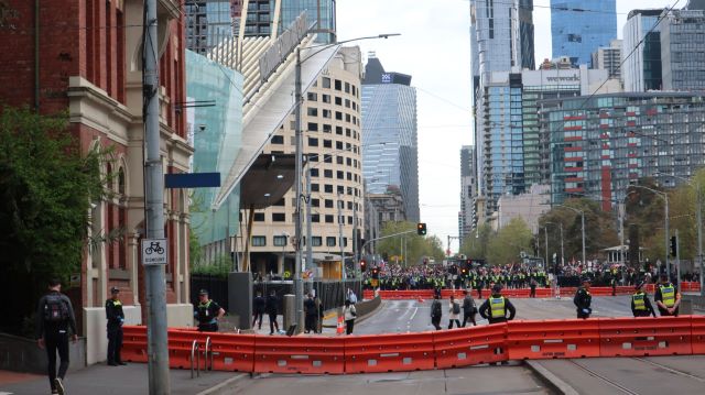 10 September 2024: protests outside the Land Forces expo at Melbourne Convention and Exhibition Centre.