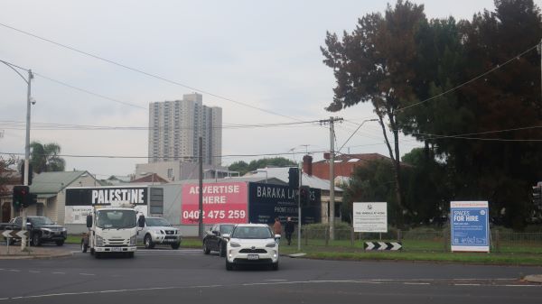 Returning home to Port via Montague St, it is likely you would have stopped at the traffic lights at City Road. It can feel like a long wait. A City of Port Phillip sign futilely warns that there are penalties for removing trees at this location. Advertisers ignore the notice when there is an of opportunity to put signs before the eyes of the thousands of motorists passing each day.