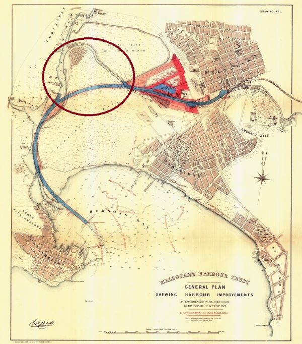 Until the late 1980s, the new course of the River was still marked ‘Coode’s Canal’ in the Melways and the former City of Port Melbourne boundary followed the former course of the Yarra River.