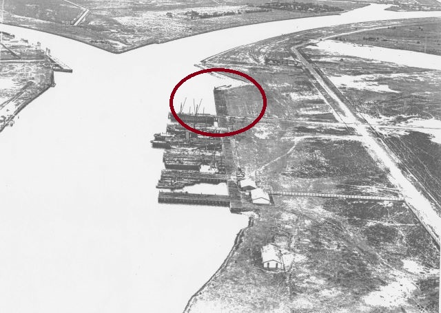 Rotten Row in the foreground. Location of Pier 35 encircled.