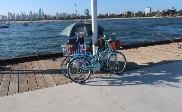 Fishers line the pier. St Kilda Pier rivals Princes Pier as a fishing destination.
