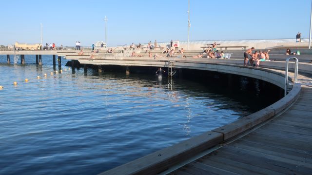 The terraces have been hugely popular for hanging out, sunbaking and swimming. No sand.