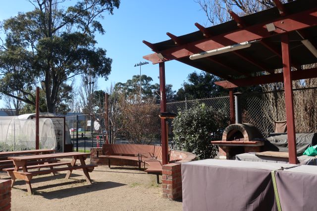The garden is meticulously cared for. On the first Sunday of the month, gardeners gather for a working bee to tend the common areas before having a shared lunch with pizza from the pizza oven . A new stainless steel sink has recently been installed. Each plot holder has a container in the shed for storing small tools and gloves.