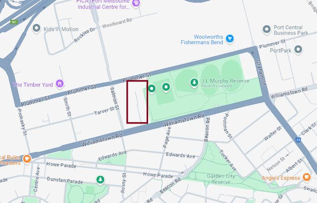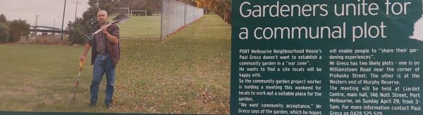 Paul Greco, community development worker at the Port Melbourne Neighbourhood House, liaised with Council and community to find a site that locals were happy with. The present site in Murphy’s Reserve, to the right of the photo, was selected.