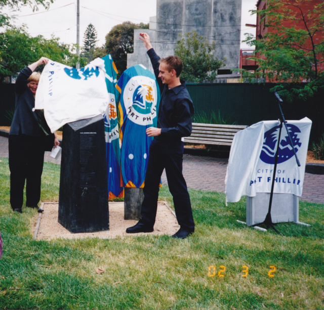 The memorialisation came about in this way. The newly formed City of Port Phillip invited suggestions for the naming of a triangular road reserve in Port Melbourne. The Port Melbourne Historical Society nominated Olive Zackharov. She was an active local resident and Senator for Victoria at the time of her death. Her influence as an educator, peace activist and social justice campaigner was widely respected. The City of Port Phillip must have commissioned the memorial, likely in consultation with her family. It was opened by then Mayor of the City of Port Phillip, Councillor Julian Hill in 2001.