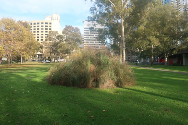 The Park has recently been refurbished by the City of Melbourne. All the different elements in the Park have now been integrated into a coherent space with a grassy area well used by school groups on excursions to the City. Bench seating along the River enables people on their lunch break to watch the action on the floating wetlands.
