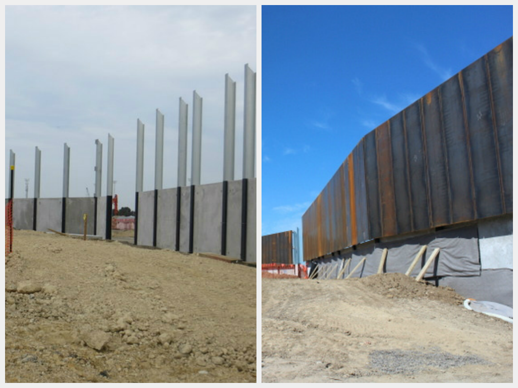 A wall was under construction to protect residents from the noise anticipated from an expanded Webb Dock.